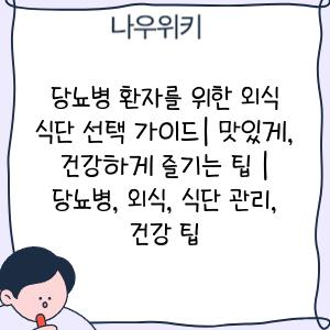 함께 읽으면 좋은 글: 당뇨병 환자를 위한 식단 관리 팁, 건강한 외식 메뉴 추천, 당뇨병 환자의 식사 팁