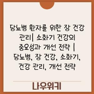 당뇨병 환자를 위한 장 건강 관리| 소화기 건강의 중요성과 개선 전략 | 당뇨병, 장 건강, 소화기, 건강 관리, 개선 전략