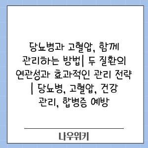 당뇨병과 고혈압, 함께 관리하는 방법| 두 질환의 연관성과 효과적인 관리 전략 | 당뇨병, 고혈압, 건강 관리, 합병증 예방