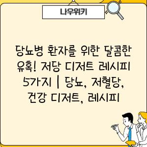 당뇨병 환자를 위한 달콤한 유혹! 저당 디저트 레시피 5가지 | 당뇨, 저혈당, 건강 디저트, 레시피