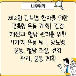 제2형 당뇨병 환자를 위한 맞춤형 운동 계획| 건강 개선과 혈당 관리를 위한 7가지 운동 팁 | 당뇨병 운동, 혈당 조절, 건강 관리, 운동 계획