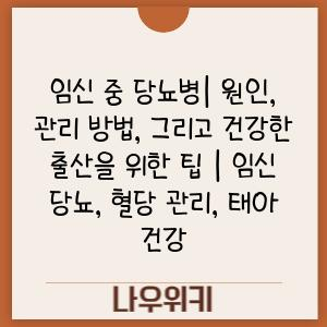 임신 중 당뇨병| 원인, 관리 방법, 그리고 건강한 출산을 위한 팁 | 임신 당뇨, 혈당 관리, 태아 건강