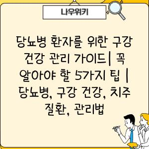 당뇨병 환자를 위한 구강 건강 관리 가이드| 꼭 알아야 할 5가지 팁 | 당뇨병, 구강 건강, 치주 질환, 관리법