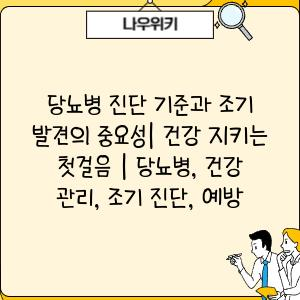 당뇨병 진단 기준과 조기 발견의 중요성| 건강 지키는 첫걸음 | 당뇨병, 건강 관리, 조기 진단, 예방